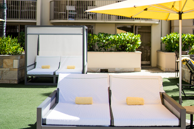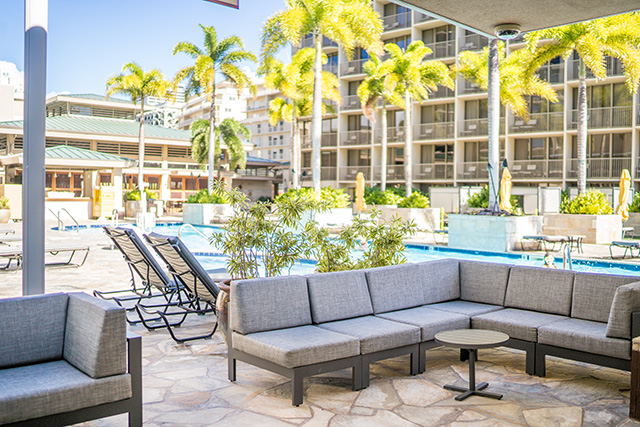 バーカウンターでバーテンダーの華麗な手さばきを眺めたり、スタイリッシュなラウンジチェアでゆったりとくつろいだり。屋根付きのパビリオンや、ハワイの陽射しのもと、プールサイドのデッキチェアで過ごしてみてはいかでしょうか。
