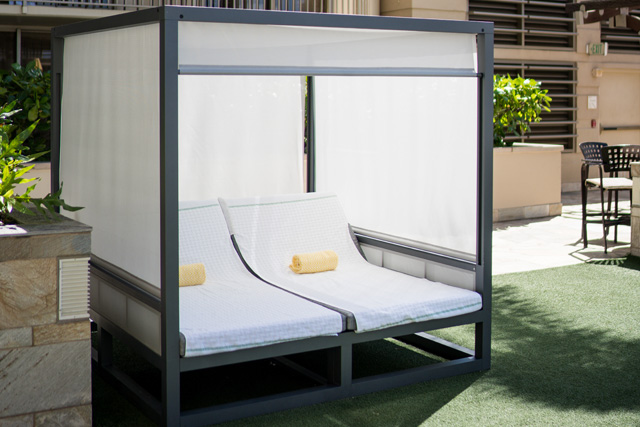 ホテル4階に位置する屋外スペース「グランド・ラナイ」には、温水プール、ジャグジー、お子さま用プールのほか、ラウンジチェア、デイベッド、プライベートカバナを備えたサンデッキをご用意しております。デイベッドやカバナのご予約はフロントデスクまでお問い合わせください。ご宿泊ゲストは特別料金でご利用いただけます。
